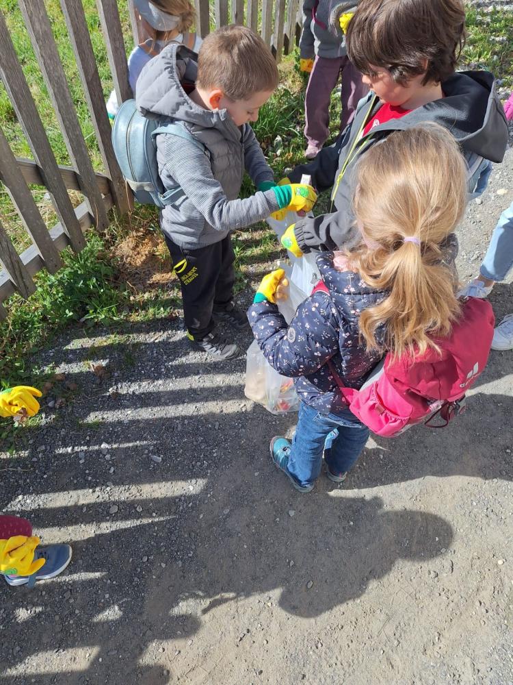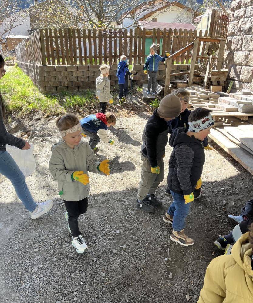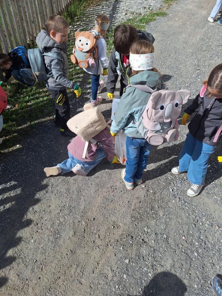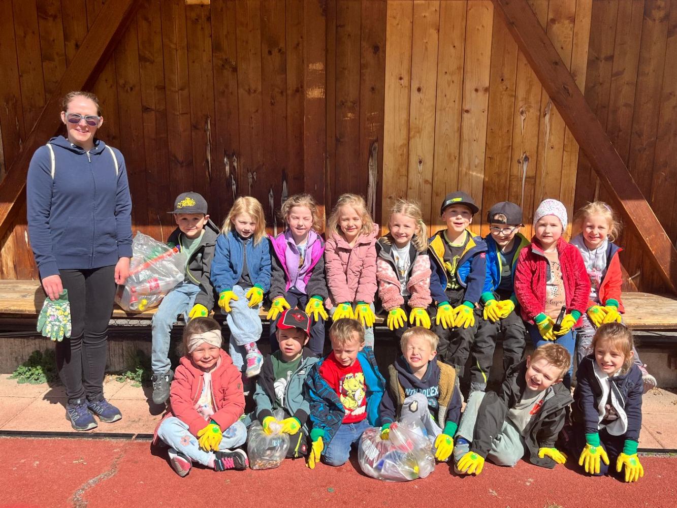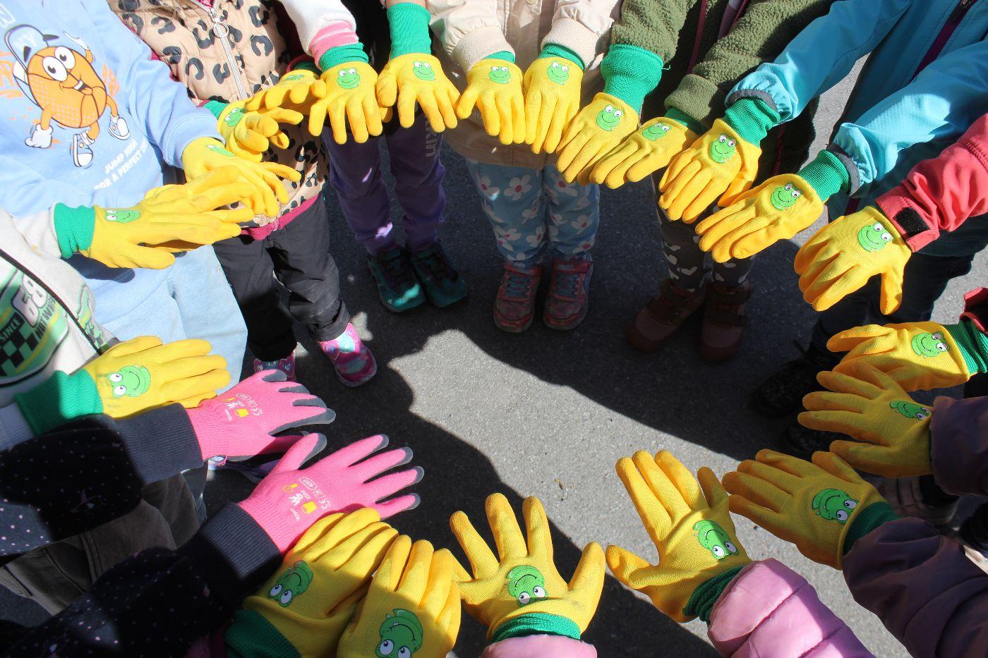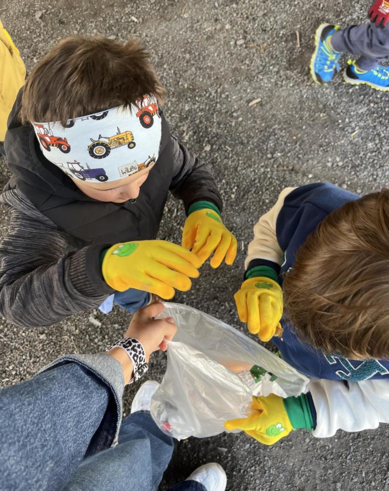 Mit unseren tollen Froschhandschuhen haben wir uns gemeinsam auf den Weg gemacht, um Müll zu sammeln. Denn wir wissen: Bleibt er liegen, verschmutzt er die Natur oft für eine sehr lange Zeit.