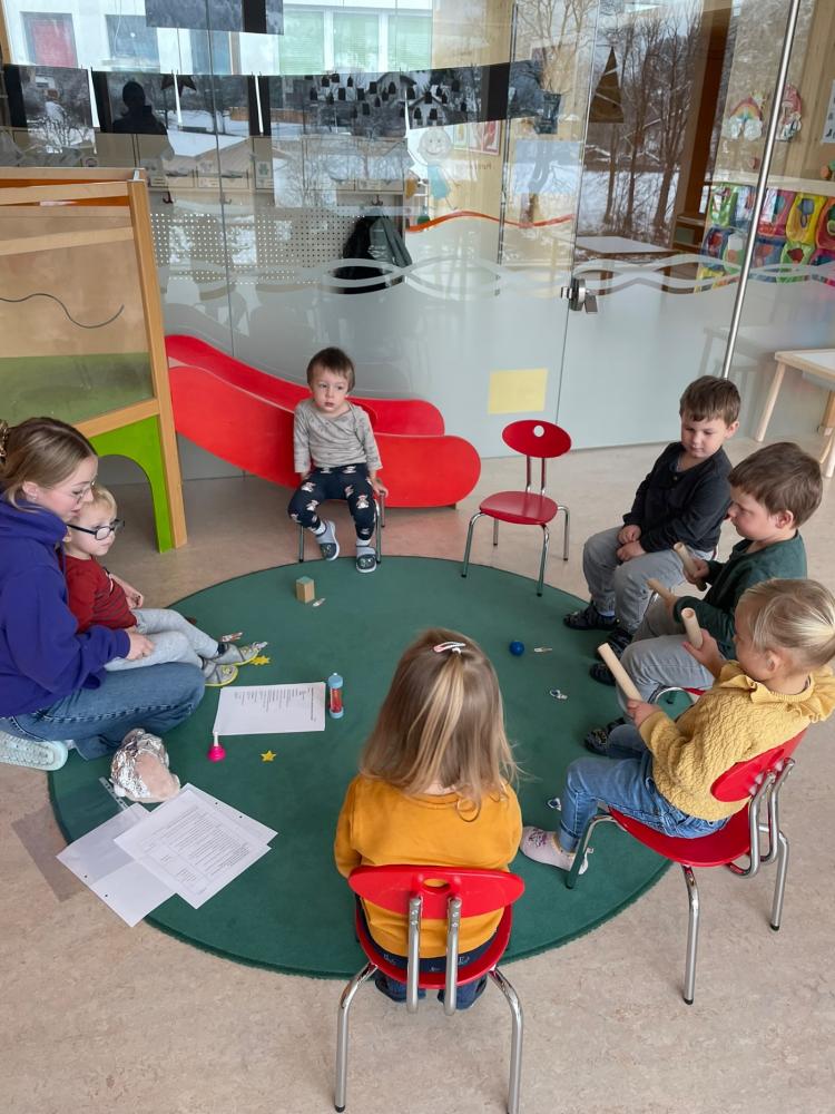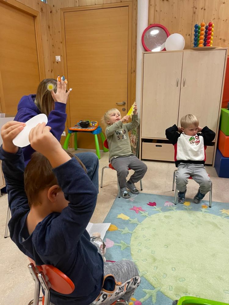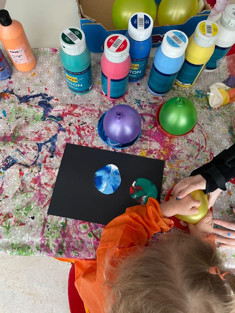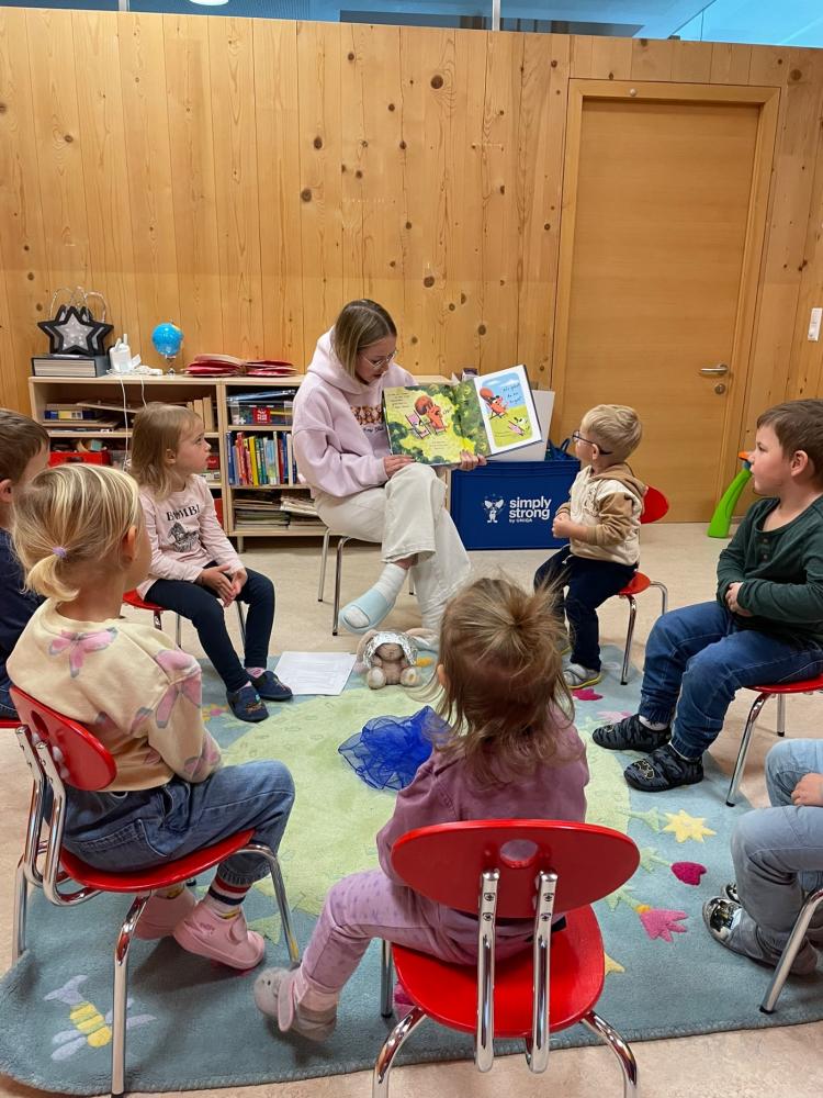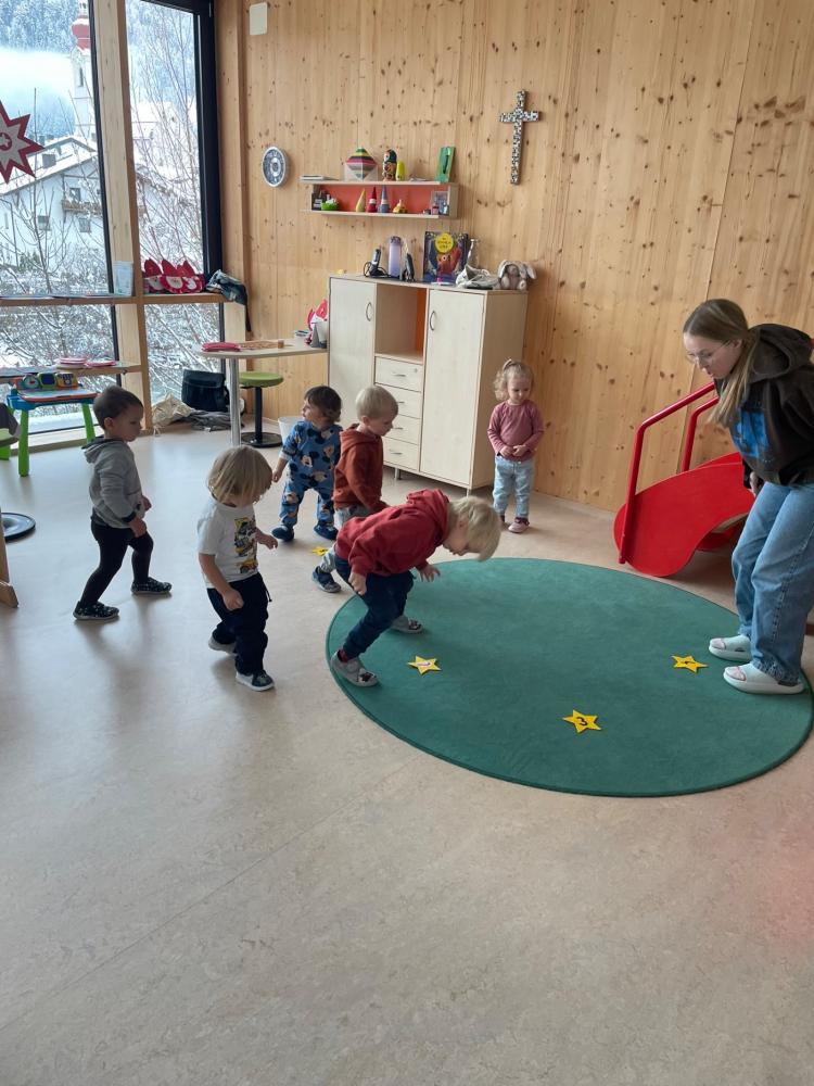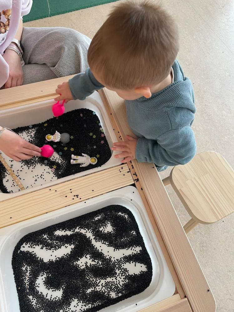 Wir entdecken die Planeten, betrachten ein Bilderbuch, gestalten Legearbeiten und erleben eine Turnstunde im "Weltraum". Die Kinder schütten echtes "Mondgestein", malen strahlende Planeten mit der Luftballontechnik und steigen zum Abschluss in unsere selbst gebaute Raketen ein - bereit für das Abenteuer im Kosmos!