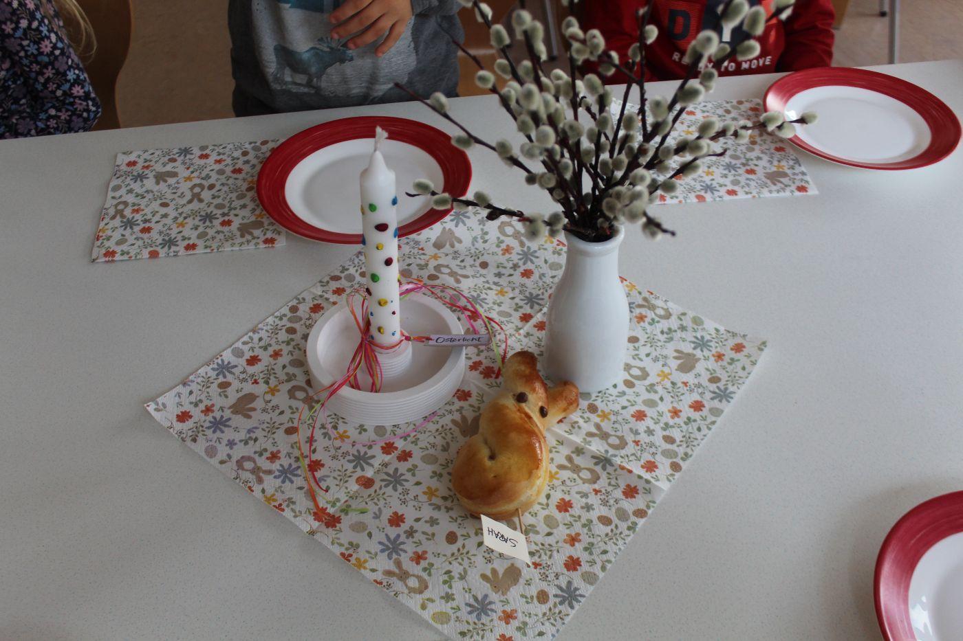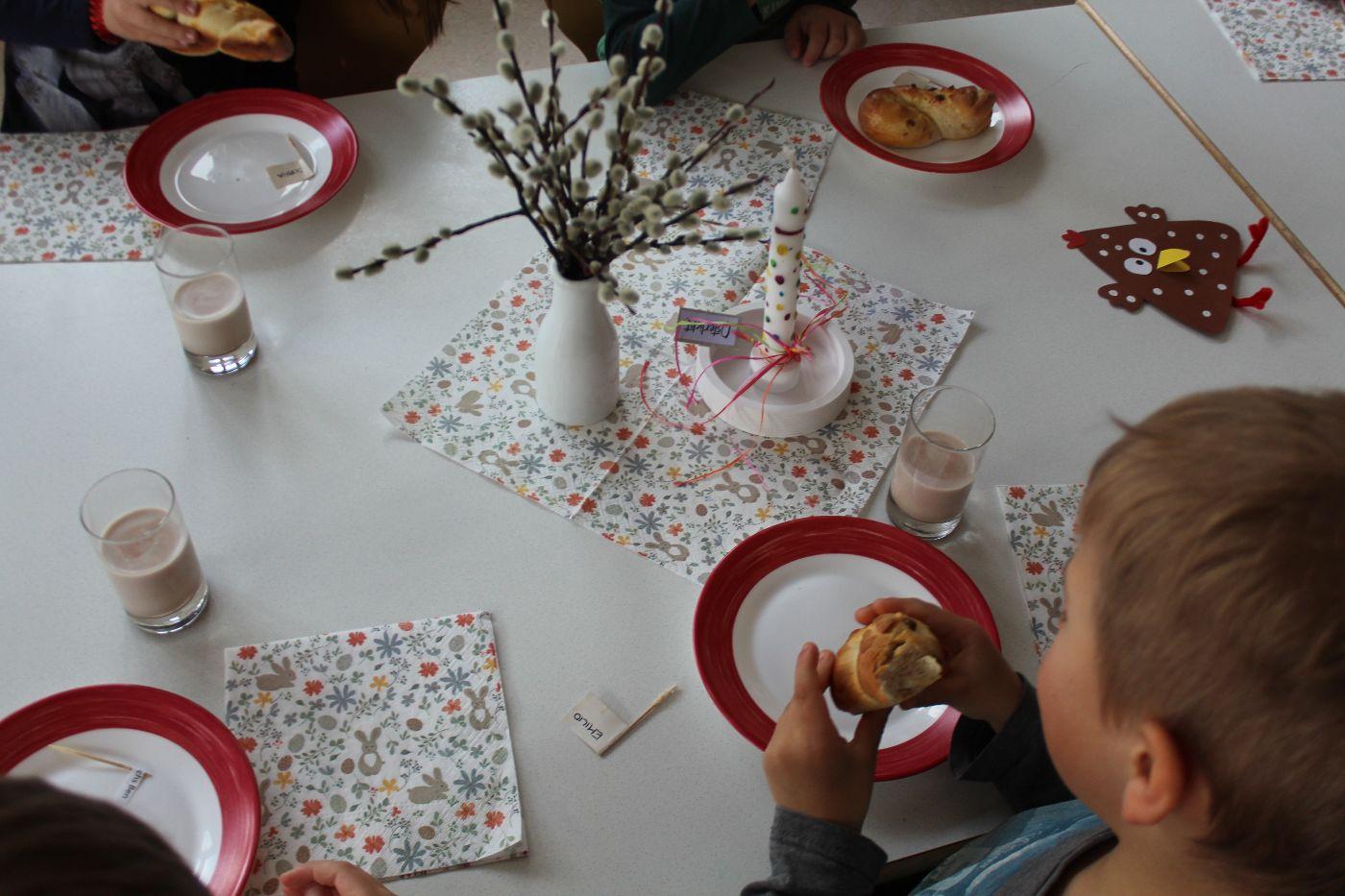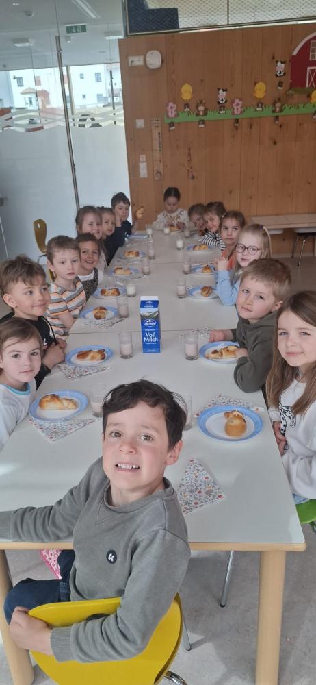 Ein weiteres Highlight in der Vorbereitung auf Ostern war unsere gemütliche Osterjause: Jede Gruppe hatte mit viel Freude und Eifer einen köstlich duftenden Osterzopf gebacken. Noch warm aus dem Ofen wurde das goldbraune Gebäck liebevoll aufgeschnitten und ganz nach Geschmack mit Butter bestrichen. Der herrliche Duft von frisch gebackenem Zopf erfüllte den Raum, da knurrte unser Bauch schon.